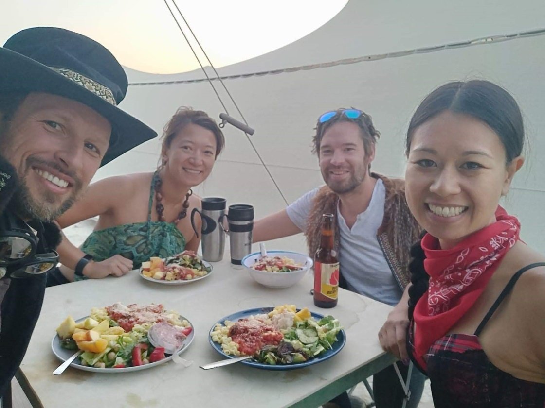 A new and exciting day starts we got to know people in our camp how gave us an introduction lesson to find our way around. We also got greeted by a mean dust storm. Everyone had to help out securing tents and items so nothing blows away. He heard stories from the previous years where whole structures were torn out from the ground. It seems like everyone learned from past failures since no one got injured.