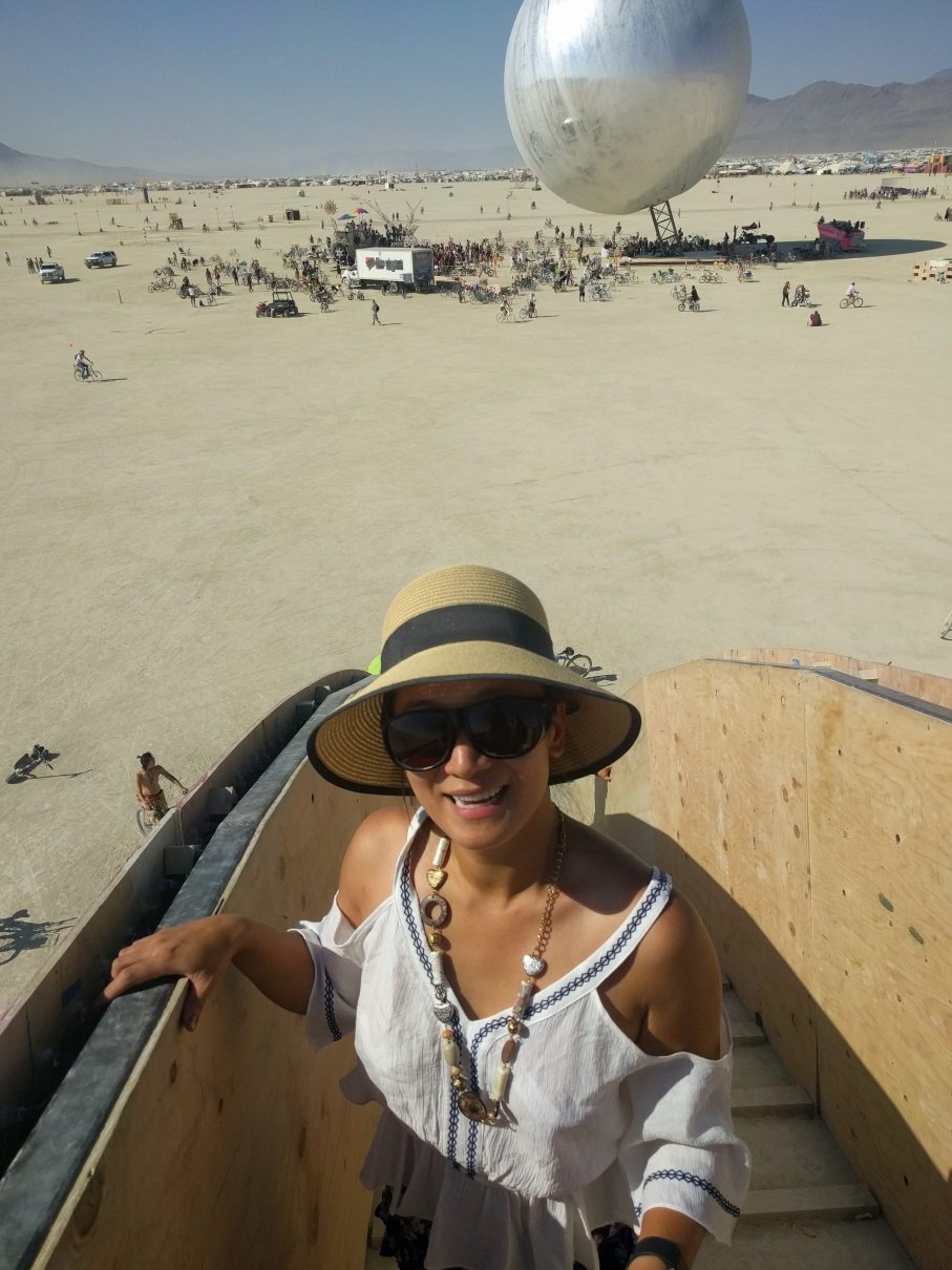 We arrived on the opening night and the closer we got to the event the more we could feel a buzz in the air. More and more fellow burners on the road heading the same way. Then the entrance with a giant lineup of cars (there is only a single road leading to Black Rock City) and lights beaming up from afar. Once we got through the main gate we had the first challenge awaiting us: apparently as a Burning Man "Virgin" you have to make a snow angel in the dust to quickly overcome any aversion to it. As we all learned during the week: there is no escape from the dust. It's in your clothing, one your skin, on the food and anywhere else you can imagine.